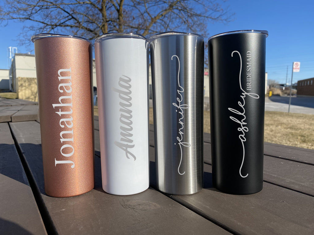 Groomsmen and Bridesmaids will love an insulated tumbler for the day of the wedding. They can use them to cool themselves down, or warm themselves up with a hot coffee or tea.