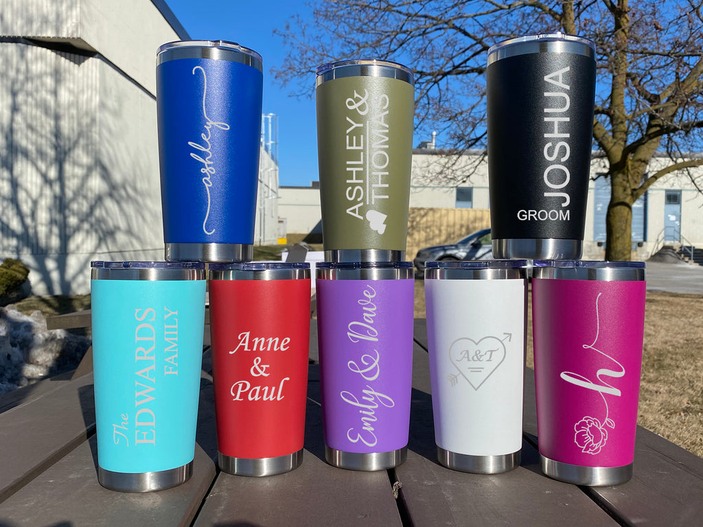 Groomsmen and Bridesmaids will love an insulated tumbler for the day of the wedding. They can use them to cool themselves down, or warm themselves up with a hot coffee or tea.